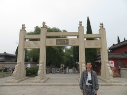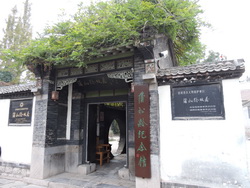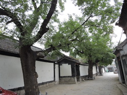 從淄川縣城開往蒲松齡故居的公交車班次甚密,上了車不需半小時就到達蒲家莊外了。過了一道新建的城門後,就走在蒲家莊的麻石路上。路邊仍保留一些過百年的老屋,特別是一棵棵槐樹,令我想此村三槐莊的別名。 |
