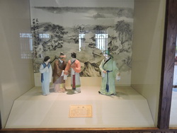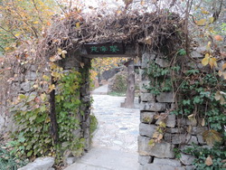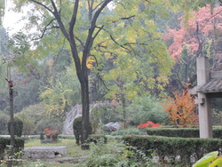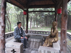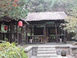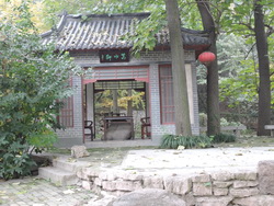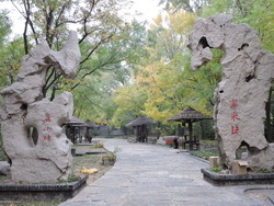 走進「嬰寧苑」,並不像書中所寫的「門前皆絲柳,牆內桃杏尤繁」,而是紅葉滿地,一片蕭颯,但嬰寧的笑聲彷彿仍迴盪不已。從「嬰寧苑」返回大路,前行不遠,有「小翠亭」。小翠和嬰寧一樣豪放不羈,她喜歡蹴踘、扮演戲中人物,常常作弄他人,大家都以為她瘋癲,其實她機智過人,為王家排難解紛。 |