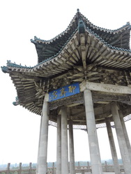 再沿柳泉古道走上城牆,最後補遊「狐仙園」,前門是兩隻狐狸,一雄一雌,頸項都掛著銅鈴,造型可愛。園中有方池,一道拱橋橫跨池上,叫留仙橋,細看橋的兩頭也伏著石狐。原來池中也有不少狐狸的造像,連散佈園中各處的石峰也多以狐仙為題,如聚仙峰等。 |