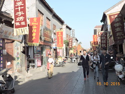 一條直出麗景門的老街叫西大街,街上的店鋪掛滿以洛陽特色的美食、工藝等為招徠的直幡招子,與其說是老街,不如說只是仿古商業街吧。