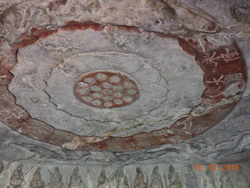 經過萬佛洞(據說窟壁刻了一萬五千餘個小佛)和惠簡洞(洞中的彌勒佛是盧舍那大佛的前身)後,便來到蓮花洞。蓮花洞建於北魏時代,因窟頂凸雕一朵大蓮花而得名。其實龍門石窟的蓮花雕刻很多,作為窟頂的藻井、洞門的花邊等並不少見,這與它在佛教的聖潔象徵有關。 |