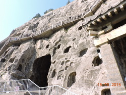 龍門石窟是在西山崖壁上開挖出來的,一般有兩至三層,參觀時常要上下台階和棧道。 |