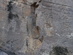 南、北二洞則建於初唐,兩洞的主尊都是阿彌陀佛。北洞的佛頭之後有火焰紋的背光,洞內的雕刻愈見精細。最有趣是南洞佛像的手印,朋友說這不就是現在流行的V字手勢嗎﹖我聽後不禁啞然失笑。 |