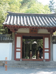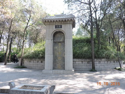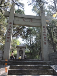 墓碑對著一道烏頭門。從烏頭門下山,途中有白亭。過了白亭,就繞到北詩廊。 |